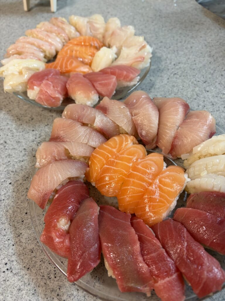 ネタを刺身包丁で好みの厚さ・大きさに切っていき