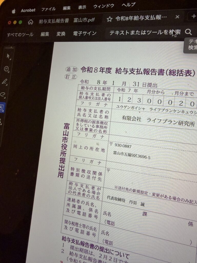 今回は、富山市役所への給与支払報告書で